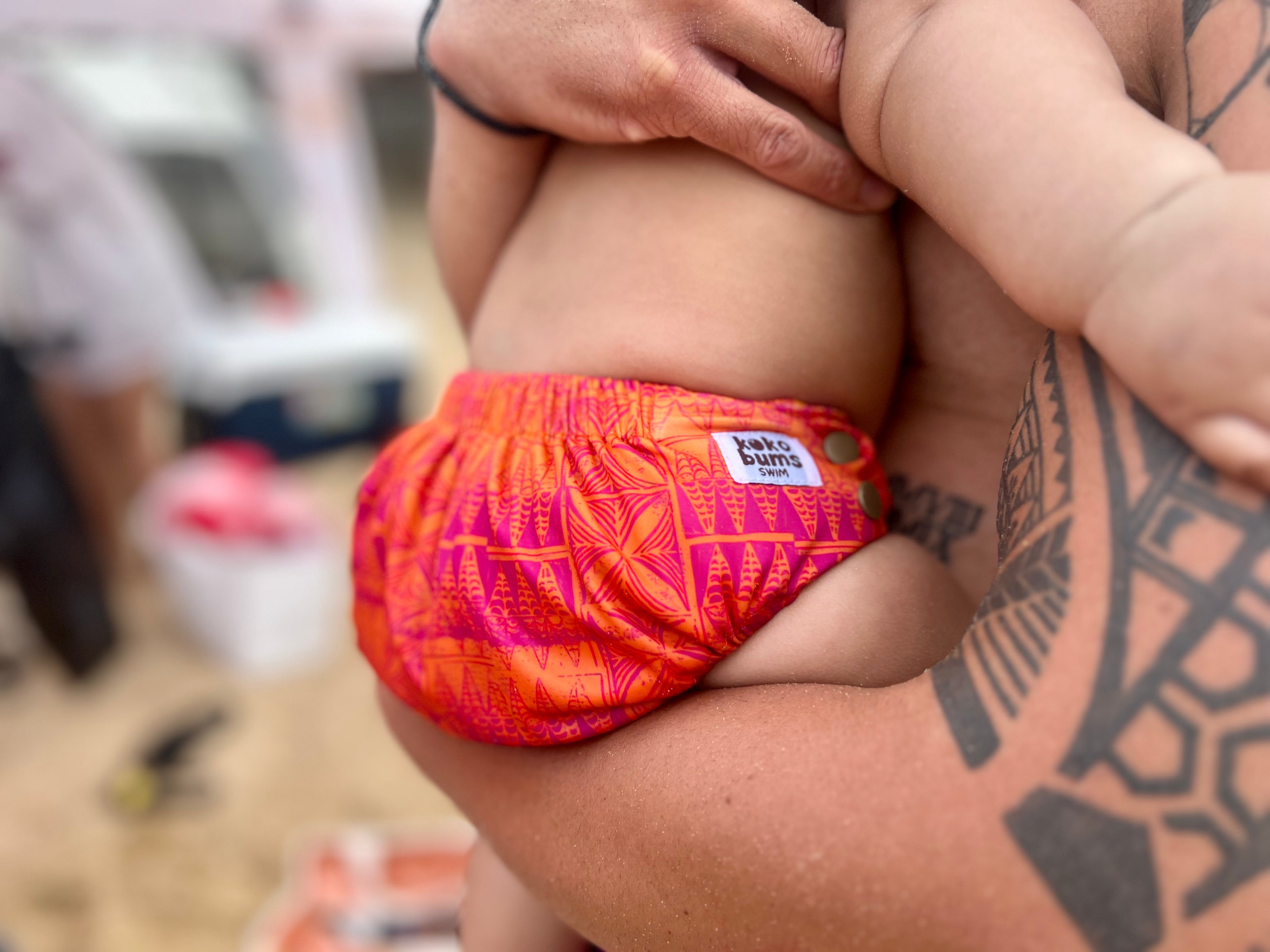 We're back and relaunching with our Polynesian Reusable Swim Nappies! Summer is just around the corner, so instead of buying swim nappies over and over and over again grab a couple of our cute reusable swim nappies and hit the water!